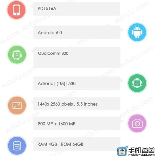 Vivo XPlay 5S получит QHD-экран, Snapdragon 820 SoC и 4 ГБ ОЗУВ базе данных популярного кросс-платформенного бенчмарка AnTuTu был замечен не представленный еще официально преемника смартфона Vivo Xplay3S.