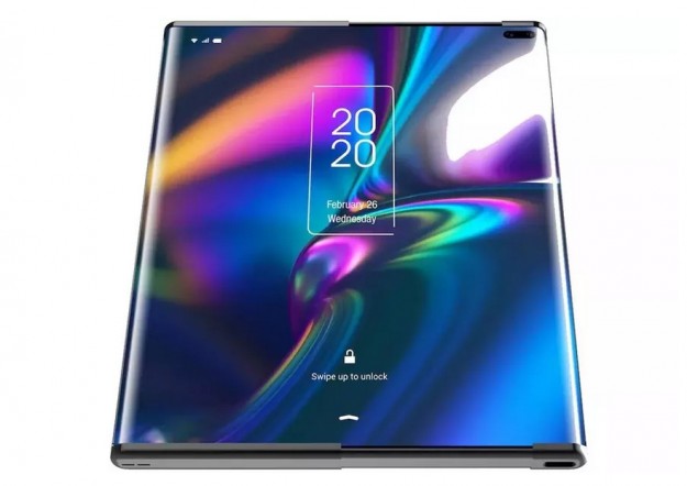 Судя по рендеру устройства, оно имеет экраны, закруглённые с обеих сторон. В сложенном состоянии смартфон надо потянуть за края, чтобы раздвинуть его и расширить дисплей. Как работает данный механизм, пока непонятно. Но, скорее, всего, часть гибкого экрана просто свёрнута внутри.