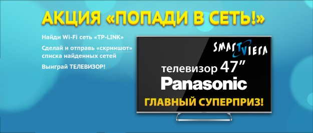 Внимание! Осталось три дня до окончания акции «Попади в сеть»Всего три дня осталось до окончания акции «Попади в сеть», в которой компания TP-LINK щедро раздает призы за один скриншот. Но для розыгрыша осталось еще 100 призов и плюс супер приз 47-дюймовый Smart телевизор.