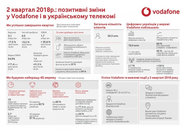 Во 2 квартале 2018 года Vodafone улучшил финансовые показателиVodafone улучшил все основные финансовые показатели по результатам второго квартала 2018 года. Доход компании во 2 квартале увеличился по сравнению с аналогичным периодом прошлого года на 7,5% и составил 3,1 млрд грн. Чистая прибыль компании во 2 квартале 2018 года составила 0,5 млрд грн, что выше аналогичного показателя прошлого года на 3,2%. Vodafone добился значительного роста операционной эффективности: показатель OIBDA увеличился на 35,8% в годовом исчислении и составил 1,7 млрд грн. Маржа OIBDA достигла показателя в 54,9%, увеличившись на 11,4 п.п. по сравнению с аналогичным периодом прошлого года. Абонентские доходы во втором квартале этого года увеличились в основном за счет роста потребления услуг мобильного интернета. Vodafone увеличил доходы от передачи данных на 51,5%, в годовом исчислении, что связано с ростом количества data-пользователей, которых за год стало на 1 миллион больше, переходом абонентов на Voice&Data и Unlim 3G Vodafone тарифы и ростом объема потребления data-услуг. В среднем клиенты Vodafone стали использовать на 139% больше мобильного интернета, чем годом ранее. По результатам 2 квартала цифровой клиент в сети Vodafone использовал в среднем 2,7 ГБ ежемесячно. Еще одним драйвером роста основных показателей во втором квартале стал запуск предложений для общения абонентов в роуминге, в частности, во втором квартале Vodafone впервые в Украине предложил своим клиентам безлимитный месседжинг в роуминге для общения в Viber, WhatsApp, Skype. За год клиенты Vodafone увеличили потребление мобильного интернета в роуминге в 21 раз. Во втором квартале 2018 общее количество роумеров выросло на 25% по сравнению с аналогичным периодом 2017 года. При этом, число пользователей мобильного интернета в роуминге стало на 89% больше по сравнению со вторым кварталом 2017 года. Абонентская база компании в целом по Украине сохраняет стабильность и по результатам 2 квартала 2018 года насчитывает 20,3 млн клиентов. Уменьшение количества клиентов на 2,6% по отношению к 1 кварталу 2018 года произошло вследствие форс-мажорного отключения связи на неподконтрольных территориях востока Украины. При этом наблюдается рост количества data-пользователей – за год цифровых клиентов Vodafone стало больше на 1 миллион. Во втором квартале 2018 года Vodafone Украина удвоил капитальные инвестиции по сравнению с аналогичным периодом прошлого года – до 2,7 млрд грн. Капитальные инвестиции компании в период активного строительства 3G и 4G сетей составили около 19 млрд грн. Джерело: SmartPhone.ua Обговорення новиниКоментариев пока никто не оставил. Станьте первым! Попередні новини