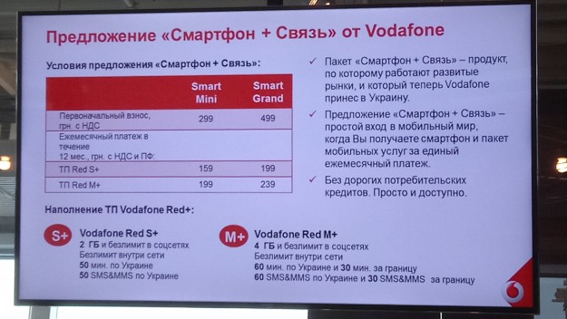 Ну а главное и такое еще непривычное для украинского рынка преимущество в предложении Vodafone - приобрести Smart Mini, Smart Grand и Smart Ultra можно будет по контракту с рассрочкой платежа на 12 месяцев. Оплата стоимости смартфона будет осуществляться в одном счете с услугами мобильной связи. Таким образом, о банковском кредите на покупку мобильного теперь можно забыть, что многим придется по душе.