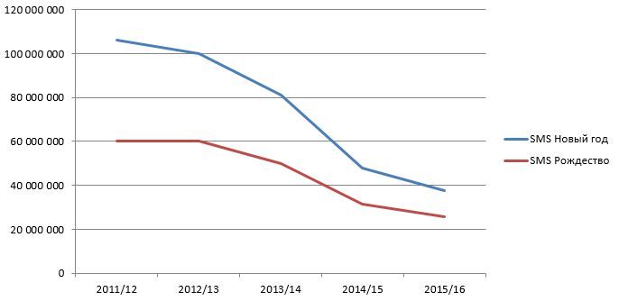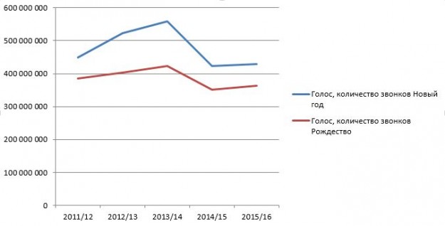 Прошлый год стал переломным не только в динамике роста потребления мобильного интернета. 2014 год был отмечен пиком голосовой активности, а в канун 2015 года впервые объем голосовых новогодних поздравлений уменьшился.