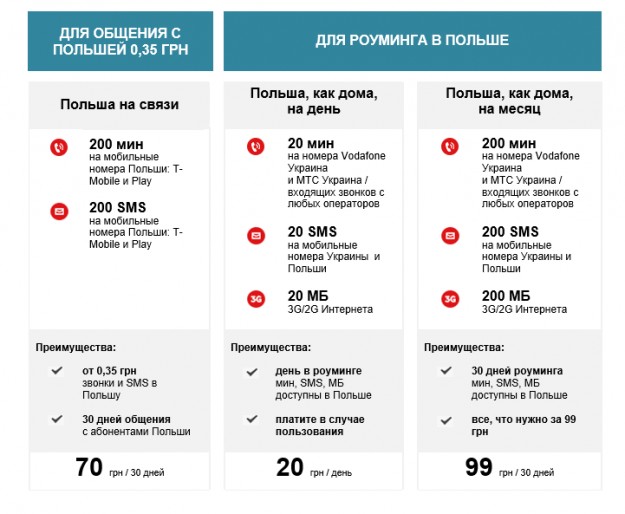 Vodafone Украина запустила новые услуги «Польша на связи» и «Польша, как дома»Vodafone предложил своим украинским абонентам новые услуги для международных звонков и роуминга в Польше. Так, с услугой «Польша на связи» стоимость 1 минуты или SMS на польском направлении составит всего 35 копеек – за 70 грн. абонент получает 200 SMS и 200 минут в месяц для звонков на мобильные номера T-Mobile и Play, на них приходится 85% всех звонков из Украины в Польшу. Подключить услугу можно с помощью USSD-команды *600*482# и кнопка вызова.