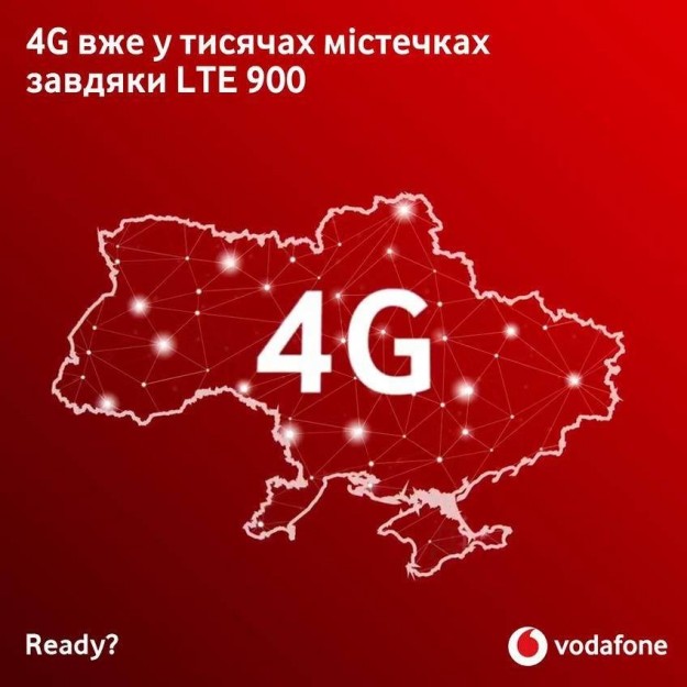 Сеть Vodafone 4G в диапазоне 900 МГц уже работает более чем в 1700 населенных пунктах и охватывает свыше миллиона человек, проживающих в Киевской, Одесской, Винницкой, Житомирской, Хмельницкой, Закарпатской, Ивано-Франковской, Львовской, Тернопольской, Ровенской, Волынской, Черновицкой, Черкасской областях и в городе Ивано-Франковск.
