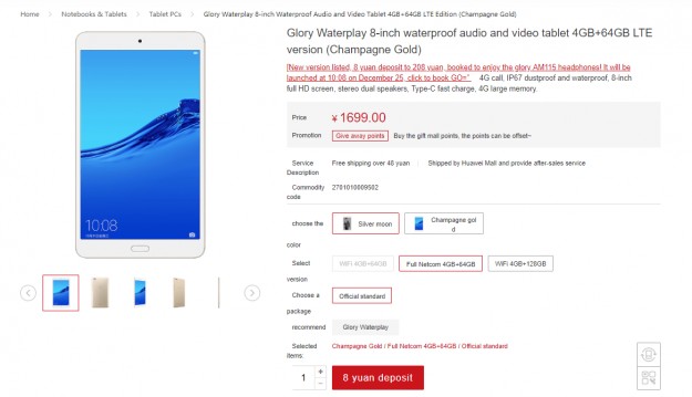 Honor Waterplay 8 LTE в данный момент стал доступен для предварительного заказа, за который покупатели получат проводные наушники Honor AM115.