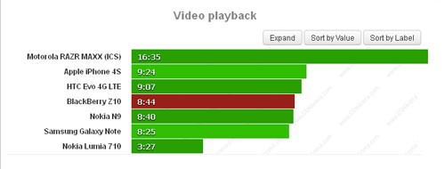 Таким образом, достигнутые результаты говорят о средних возможностях по части автономности во время WEB-серфинга и воспроизведения видео. Таким образом, в этом плане BlackBerry Z10 можно назвать середнячком. Его возможности далеки от эталонных, но и задних, что говорится, этот аппарат не пасет.