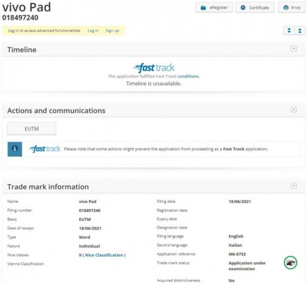 Вслед за уже представленными Xiaomi Pad 5 / 5 Pro и Lenovo Pad Pro 12.6, свою новинку готовится презентовать Vivo. Упоминания о первом планшете компании появились ещё весной, которые позже подтвердились словами вице-президента бренда. Теперь же сетевой информатор Digital Chat Station уточнил позиционирование Vivo Pad: девайс получил на вооружение чипсет Snapdragon 870, что ставит его в один ряд с передовыми решениями конкурентов. При этом регистрация девайса в базе данных европейского регулятора EUIPO указывает, что новинка не останется эксклюзивом Китая. Напомним, планшету также приписывают батарею на 8040 мАч и дизайн с тончайшими рамками.
