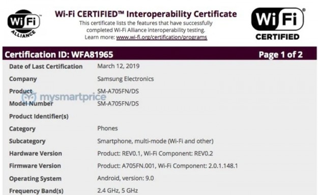 Wi-Fi-сертификация говорит о скором анонсе смартфона Samsung Galaxy A70