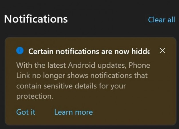Windows-додаток «Зв'язок з телефоном» не показуватиме конфіденційні повідомлення зі смартфонів на Android 15В Android 15 розробники з Google реалізували кілька нових функцій, спрямованих на підвищення конфіденційності даних користувачів. На цьому тлі застосунок Microsoft "Зв'язок з телефоном", призначений для синхронізації смартфонів з комп'ютерами під управлінням Windows, почав повідомляти користувачів про те, що деякі конфіденційні повідомлення від пристроїв з Android 15 відображатися не будуть.