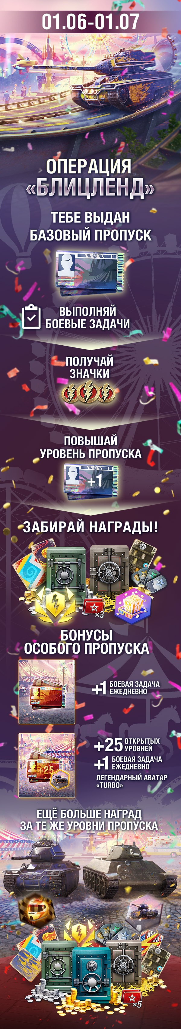 World of Tanks Blitz с размахом отмечает 7-летие игры!Семь лет назад World of Tanks Blitz положила начало отдельному игровому жанру в мире мобильных игр. За это время пользователи на разных платформах скачали игру более 170 миллионов раз, а по количеству загрузок в мире Украина вошла в ТОП-5! С релизом обновления 8.0 игроков ждут более реалистичная графика, новая ветка американских тяжелых танков, а также серия праздничных сюрпризов в честь дня рождения игры. «В World of Tanks Blitz есть хорошая традиция – выпускать важные обновления и проводить особые события в канун своего дня рождения. В этот раз мы порадуем геймеров улучшенной графикой, которая сделает игру более реалистичной без снижения технических показателей, а также добавим новую ветку американских „тяжей“ с необычной механикой. Все это пройдет на фоне веселых режимов и больших игровых активностей, — говорит Андрей Рябовол, продакт-директор World of Tanks Blitz. — Также в знак благодарности за многолетний интерес и готовность делиться обратной связью мы приготовили для наших игроков памятные награды. С днем рождения, World of Tanks Blitz!» Реалистичная графика С обновлением 8.0 графическое отображение техники в игре станет гораздо ближе к реальности: при контакте с грязью или снегом танк останется грязным или заснеженным. А при погружении в воду машина станет не только чистой, но и мокрой (впоследствии поверхность танка высохнет). Металлические элементы заблестят с новой силой, а все материалы, будь то резина или ткань, приобретут более реалистичную фактуру. Благодаря физически достоверному рендерингу (PBR) похорошеют и многие 3D-модели танков. Пять танков из новой ветки американских тяжей поступили в игру уже с PBR. Со временем на новое визуальное качество будут переводиться и 3D-модели остальных 370 машин World of Tanks Blitz. Американские «тяжи» Новая ветка американских тяжелых танков включает в себя машины с VII по X уровень. При ее создании использовались проекты танков, разработанные исследовательской программой армии США середины XX века. Помимо типичных сильных сторон, таких как отличные углы вертикальной наводки и крепкая башня, некоторые «американцы» (IX и X уровней) могут выделяться фичей «аварийная гусеница», благодаря которой их крайне трудно обездвижить. Есть у них и другие нестандартные технические решения: например, у техники VII уровня двигатель расположен в башне. Начиная с IX уровня обладателям американских «тяжей» предлагается выбор из двух орудий с барабаном на 2 или 3 снаряда. Одно орудие отличается более высоким разовым уроном и меньшим интервалом между выстрелами. Второе – менее продолжительным временем перезарядки барабана (и более высоким DPM), а также большими точностью и бронепробитием. Парк аттракционов «Блицленд» По случаю 7-летия World of Tanks Blitz ангар на время превратится в парк аттракционов «Блицленд»! Посетители парка смогут выиграть уникальный танк V уровня Pz. IV «Гаргулья» и Kunze Panzer VII уровня в «Тире» (с 14 по 21 июня) и «Силомере» (с 21 по 28 июня). А с 21 июня на неделю откроется «Сувенирная лавка» с редкими товарами. Также на время в игру вернутся режимы-фавориты Mad Games и «Возрождение»!