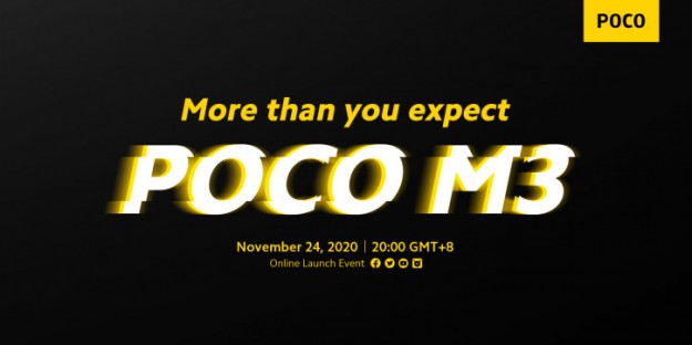 Xiaomi готовит анонс Poco M3 на следующую неделю: что известно?Следующая неделя может оказаться чрезвычайно богатой на новинки Xiaomi. Так, одна из утечек говорит о том, что 24 ноября мы увидим Redmi Note 9 5G и Redmi Note 9 Pro 5G, а еще на горизонте маячит Redmi (Note) 10 с батарейкой на 6000 мАч. Теперь уже официально на 24 ноября назначена презентация Poco M3. Что это будет за устройство, непонятно, но предполагается, что мы увидим ребрендинг того самого Redmi (Note) 10. Стало быть Poco M3 получит 6,53" дисплей с разрешением Full HD+, чипсет Snapdragon 662, четверную основную камеру с 48-Мп основным сенсором, сканер отпечатка на торце, уже упомянутую батарейку на 6000 мАч и MIUI 12 на Android 10. Подтверждение рассчитываем получить уже через неделю.