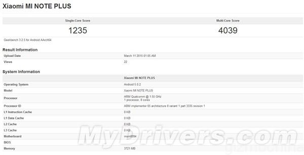 Xiaomi готовит к анонсу Mi Note Plus с QHD-дисплеем и Snapdragon 810В базе данных бенчмарков AnTuTu и Geekbench был замечен не представленный еще официально смартфон компании Xiaomi под названием Mi Note Plus.