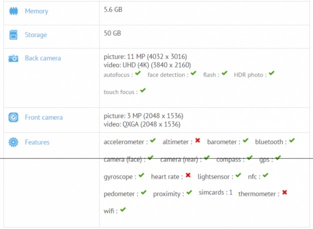 В тестере среди спецификаций модели значится 5.1-дюймовый дисплей с разрешением 1920х1080 точек, 8-ядерный процессор от Qualcomm с тактовой частотой 2.2 ГГц и графикой Adreno 512, а также 6 ГБ оперативной памяти и 64 ГБ встроенной.