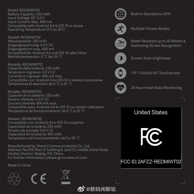 Xiaomi Mi Watch Lite или Redmi Watch: дизайн и характеристики часовВ базе данных американского регулятора FCC прошли сертификацию неанонсированные умные часы Xiaomi Mi Watch Lite. Исходя из названия гаджета, это будет упрощённая версия базовой модели Mi Watch, представленной в прошлом году. Документ содержит изображение устройства в квадратном корпусе с кнопкой управления и силиконовым ремешком. Цветной 1,41" HD-дисплей поддерживает функцию автояркости, а GPS-модуль позволит использовать часы как полноценный фитнес-трекер. Заявлена водонепроницаемость на глубине до 50 метров и возможность круглосуточного контроля пульса, а также несколько спортивных режимов. Питание же обеспечит аккумулятор ёмкостью 230 мАч. Учитывая, что девайс имеет номер модели «REDMIWT02», на некоторых рынках новинка может дебютировать как Redmi Watch.