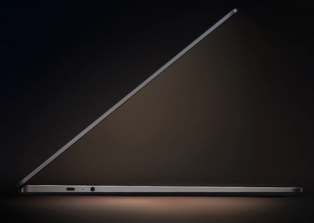 Третье изображение показывает, что новый ноутбук будет очень тонким. Компания даже предложила пользователям угадать, какой будет толщина устройства. На левом торце корпуса можно рассмотреть порт USB-C и 3,5-мм разъём для подключения аудиоустройств.