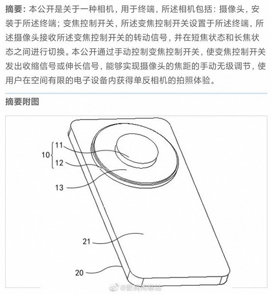 Авторитетний інформатор Digital Chat Station стверджує, що Xiaomi працює над новою камерою для смартфона, яка буде схожа на дзеркальні камери. Китайська компанія запатентувала нову систему масштабування, при цьому патент описує смартфон, оснащений єдиним модулем основної камери. Також згадується великий датчик зображення, змінна фокусна відстань і рухомий об'єктив.