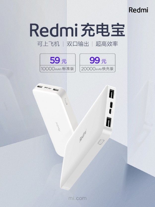 Xiaomi представила PowerBank Redmi на 10 000 и 20 000 мАчБренд Redmi представил пару внешних аккумуляторов емкостью 10 000 и 20 000 мАч. Оба оснащены двумя интерфейсами USB-A (подходит для одновременной зарядки двух смартфонов) и по одному USB-С и microUSB, что делает его универсальным средством для зарядки смартфонов и других устройств. А еще, по словам компании, PowerBank Redmi можно перевозить в самолете. Старшая версия поддерживает быструю зарядку 18W. Реализованы все плюшки для гарантии безопасности устройств и их владельцев (защита от перегрева, перенапряжения, замыканий и прочего). Старт продаж намечен на 23 июля по цене 59 и 99 юаней ($8.5 и $14) за в зависимости от объема.