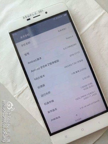 Судя по снимкам опубликованным в китайском сервисе микроблогов Weibo, Redmi 4 получит цельнометаллический корпус со сканером отпечатков пальцев на тыльной панели. Смартфон будет оснащен процессором с тактовой частотой 2 ГГц, 2 ГБ оперативной памяти и 16 ГБ встроенной.