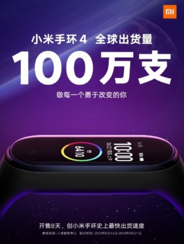За восемь дней Xiaomi продала более 1 млн фитнес-браслетов Mi Band 4Ранее в этом месяце компания Xiaomi представила фитнес-браслет Mi Band 4, который получил цветной дисплей, встроенный NFC-чип и датчик ЧСС. Фитнес-браслет произвёл хорошее впечатление на потенциальных покупателей, что привело к реализации более 1 млн единиц гаджета за первые восемь дней с начала официальных продаж.