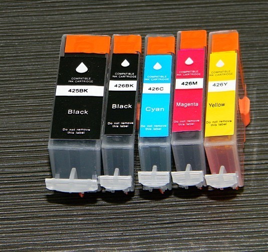 Картридж CanonУстройство Canon 6140 имеет специальные площадки для заправки с целью облегчения выполнения данной процедуры. В наборе есть пять резервуаров для чернил, которые не связаны одной платформой, и их можно устанавливать по отдельности. Поэтому можно менять только опустевшую емкость. Быстрее всего заканчивается черный цвет. Расходники Canon MG5140 обычно содержат в комплекте такое: PGI-425 имеет пигментные черные чернила для текста; CLI-426 разноцветные водорастворимые чернила (черные, синие, желтые и красные), предназначенные для печати фотографий.