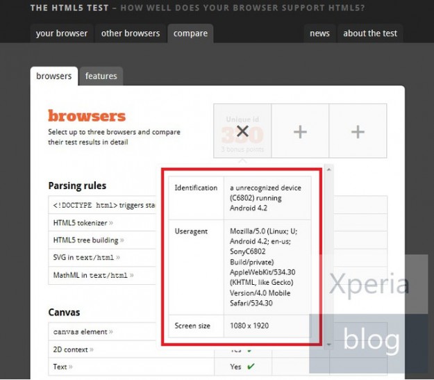 Засветившийся в тестах Sony C6802 может оказаться 5-дюймовым Xperia GagaТаинственное устройство C6802 (C680X) было замечено в списке смартфонов прошедших HTML5 тест. Судя по номеру модели, смартфон в линейке устройств от Sony займет место выше, нежели смартфон Xperia Z (aka C660X). Из технических характеристик, которые удалось узнать, известно только то, что новинка будет оснащена 5-дюймовым Full HD дисплеем с разрешением 1920х1080 пикселей и будет работать под управлением операционной системы Android 4,2 Jelly Bean, что не удивительно, так как Key Lime Pie еще не представлена. По имеющимся на данный момент характеристикам смартфон ничем особо не отличается от Xperia Z. Но есть предположения, что главное отличие будет заключаться в скорости обработки данных, объеме оперативной памяти и мощности аккумулятора.