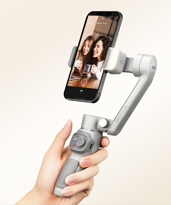 Обновленный дизайн для удобной съемки Стедикам - это компактный рабочий инструмент, который должен быть готов к работе в максимально короткое время. И Smooth-Q3 и этом смысле на голову обошел своего предшественника Smooth-Q2. Он легче складывается, имеет меньший вес, работая при этом с большей полезной нагрузкой. Его размеры составляют 180х136х40 мм, тогда как он весит всего 340 г и может выдержать полезную нагрузку до 280 г. Кроме улучшенного механизма складывания/раскладывания пользователи также могут насладиться удобным управлением и съемкой. Все благодаря чрезвычайно компактной и эргономичной рукоятке. Новое интуитивно понятное расположение кнопок обеспечивает общую плавность работы. Например, тройным нажатием на кнопку съемки происходит переключение между портретной и альбомной ориентацией - что может быть проще. Поэтому сверхширокоугольная съемка доступна так же легко, как и запись видео в портретном режиме. Дополнительные преимущества для членов ZY Prime Наконец, специальные преимущества для членов ZY Prime. Они включают: возможность редактирования в Интернете, отслеживание лица в камере, дополнительный эффект "гламур" и режим съемки коротких видеороликов, а также платформу для трансляций видео вживую. Кроме того, с помощью функции дистанционного управления ZY Remo, второе устройство может управлять мобильным телефоном на стедикаме, одновременно обеспечивая простое переключение между режимами съемки и мониторинга.