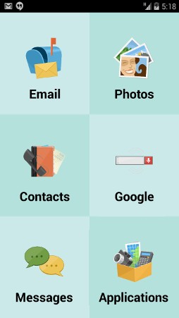 Последней предусмотрено наличие на дисплее девайса всего шести иконок: "Контакты", "Фото", "Сообщения", "Почта", "Поиск Google" плюс еще одна, за которой спрятаны настройки и установленные приложения.