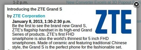ZTE Grand S: самый тонкий планшетофон в мире будет представлен 8 январяСегодня стало известно о том, что компания ZTE на грядущей выставке CES 2013 планирует показать самый тонкий в мире 5-дюймовый планшетофон ZTE Grand S. Анонс новинки состоятся уже 8 января в Лас-Вегасе.