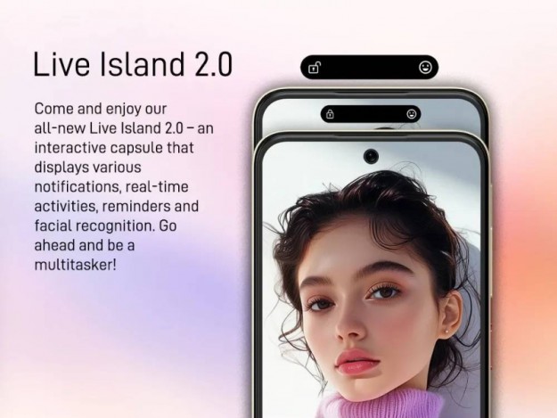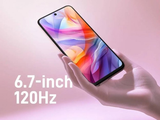 Смартфон пропонується в чотирьох варіантах виконання: у чорному і рожевому з кришкою, що імітує скло, а також у помаранчевому і зеленому із задньою кришкою з покриттям зі штучної шкіри. Пристрій оснащений 6,7-дюймовим IPS-дисплеєм з роздільною здатністю HD+ (1612 x 720 пікселів) і частотою оновлення 120 Гц.