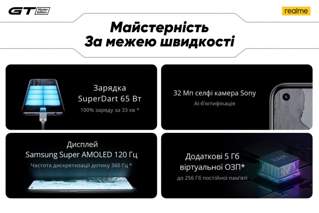 Звезда дизайна в Украине! realme GT Master Edition представлен официально2 ноября 2021 года китайская компания realme, самый быстрорастущий бренд смартфонов в мире, представил в Украине стильный и элегантный realme GT Master Edition. В 2021 году этот смартфон стал обладателем премии «Оскар» в дизайне – IF Design Award.