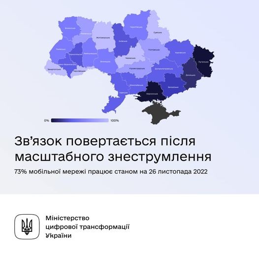 Зв’язок повертається після масштабного знеструмлення в Україні. 73% мобільної мережі працюєСьогодні багато хто прокинувся та побачив перші за 3 доби пропущені дзвінки та непрочитані смс від близьких. Зв'язок продовжує повертатися. І незабаром з'явиться в усіх регіонах. Відчутно покращилася ситуація зі зв'язком у Кіровоградській, Дніпропетровській, Волинській, Миколаївській, Полтавській, Харківській та Житомирській областях. Завдяки потужній роботі енергетиків, мобільні оператори перепідключили там половину базових станцій.