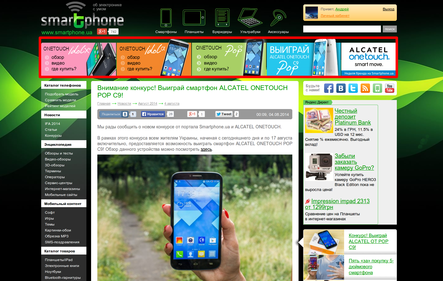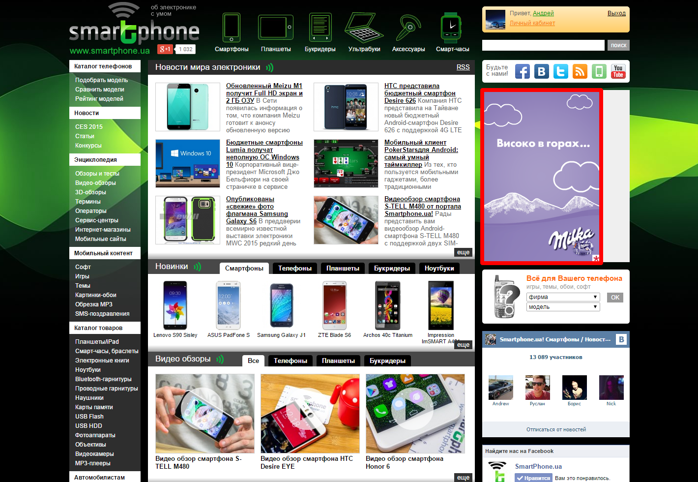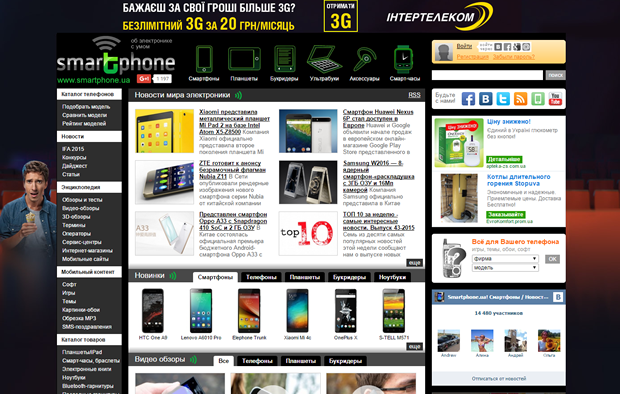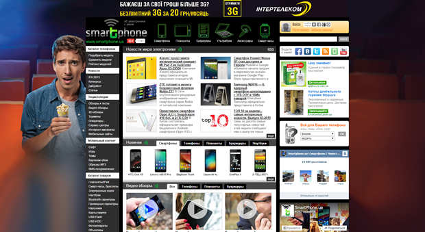 SmartPhone.ua – портал по мобильной связи, один из крупнейших сайтов, предлагающий всю необходимую информацию как о мобильных телефонах, смартфонах и коммуникаторах уже пользующихся большой популярностью, так и о моделях, которые только появляются на нашем рынке. Посетители сайта – это мужчины и женщины (в возрасте 16-44 лет), которые интересуется последними новинками в мире мобильных технологий, новыми устройствами и сопутствующими гаджетами. Их привлекают возможность просмотра текстовых и видео обзоров, актуальные цены интернет магазинов, уникальные сервисы, такие, например, как обрезка мелодий online. Аудитория сайта очень активная, что заметно по глубине просмотра.