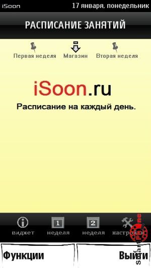Программа iSoon представляет собой утилиту, предназначенную для просмотра расписания в ВУЗе и школе. Программа имеет простой интерфейс, так что проблем с её эксплуатацией возникнуть не должно.