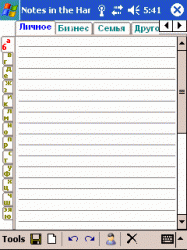 Записи на Ладони позволит вам использовать свой КПК как удобную записную книжку, с возможностью разделения по алфавиту и на группы (Личное, Бизнес, Семья, Другое, Заметки), что позволит вам без труда разобраться во всех своих записях. Все страницы при сохранении автоматически помещаются в папку My Documents в формате .pwi (Pocket Notes). Поэтому вы легко можете отправлять свои страницы по почте, просто включите файлы созданные программой в ваше сообщение. При всех своих возможностях размер "Записи на Ладони" очень мал, всего 30 кб.