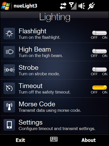 nueLight превратит ваш КПК в универсальный фонарик, используя вспышку. Так же у программы есть функция передачи сообщений азбукой Морзе.