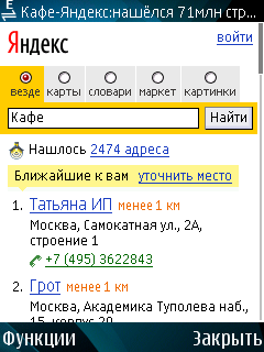находить ближайшие к вам объекты: кафе, аптеки, магазины, авторемонтные мастерские и т.п.;