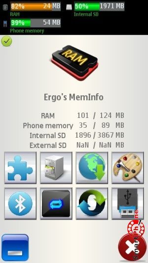 Программа MemInfo представляет собой виджет, который отображает состояние оперативной памяти, памяти смартфона и карты памяти. В программе также имеется возможность быстрого доступа к различным узлам смартфона.