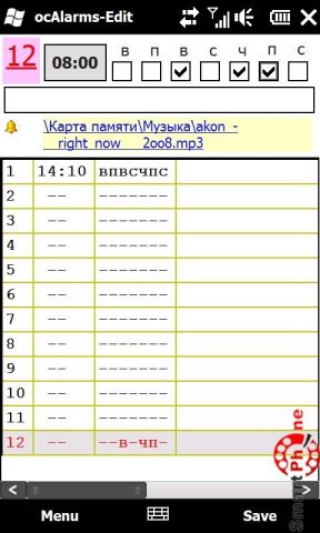 ocAlarms - программа представляющая собой двенадцать программируемых будильников для Windows Mobile. Программа с простым интерфейсом и позволит быстро настроить будильник. Программа распространяется бесплатным путем.