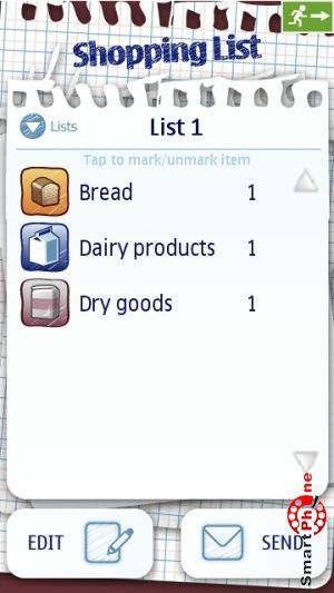 Программа Shopping List представляет собой виджет для создания электронного списка покупок с возможностью обмена через смс. Утилита поможет с легкостью создавать, сохранять, управлять и обмениваться несколькими списками покупок.