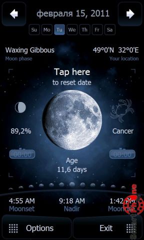 Deluxe Moon - программа для анализа Луны. Программа покажет такие интересные вещи, как текущая лунная фаза, знак зодиака, в котором находится Луна, время её восхода и захода, и многое другое.