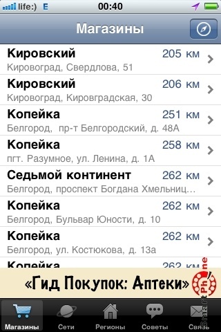 Бесплатное приложение Гид Покупок: Продукты предназначено для поиска ближайшего супермаркета. Пока, в перечне фигурирует большинство российских супермаркетов и торговых сетей. Это приложение полезно для туристов, бизнесменов и всех, кто едет в Россию.