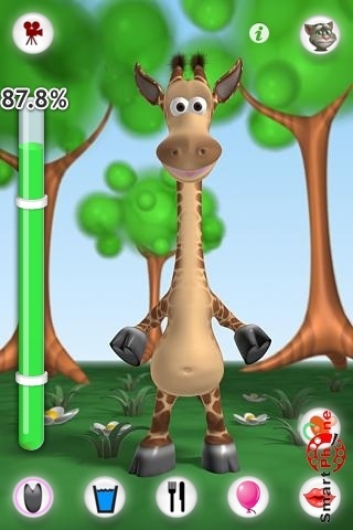 Приложение Talking Gina the Giraffe это имитатор милой самки жирафа, повторяющей услышанное искаженным голосом. С Джиной можно играть в ладушки. Много уровней, с повышением сложности вычеркивают программу из числа "однодневок". Каждый день, войдя в программу, вы получаете один подарок.