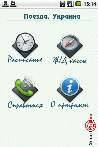 Программа Поезда.Украина представляет собой оффлайн справочник, который позволяет узнать расписание поездов украинской железной дороги, график работы Ж/Д касс и посмотреть их местоположение на карте(доступ в интернет), а также связаться со справочной вокзалов. Существует автоматический (GPS) и ручной выбор городов.