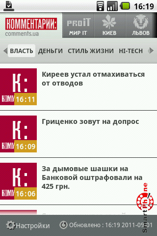 Программа Comments.UA представляет собой новостную утилиту, в которой собраны несколько новостных лент - под вкладкой КОММЕНТАРИИ новости разделов: Власть, Деньги, Стиль жизни, Hi-Tech, Спорт, Мировые новости, Дайджест самых резонансных материалов украинских СМИ.