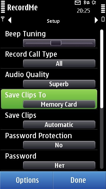 Используя данную программу для смартфонов Вы сможете выполнять записи ваших телефонных разговоров. Запись может выполняться как с писком (стандартным звуковым сигналом) так и без него, т.е. согласно вашему выбору в настройках. RecordMe имеет возможность отправлять полученные звуковые файлы сразу же после записи по электронной почте или MMS. Также Вы сможете удалять записи из памяти телефона после отправки, тем самым не имея ограничений на количество записываемых файлов. Пользователь может загружать записанные звуковые файлы записей разговоров на FTP-сервер по собственному выбору. Программа имеет автозапуск.