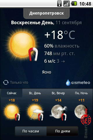 Программа Gismeteo Weather Forecast LITE представляет собой официальное и совершенно бесплатное погодное приложение от Гисметео. Утилита отображает довольно широкий ряд информации: текущая погода по всему миру; изменение фонового изображения; прогноз погоды на 7 дней; детальный прогноз на 48 часов; предупреждения о геомагнитных бурях и других явлениях...