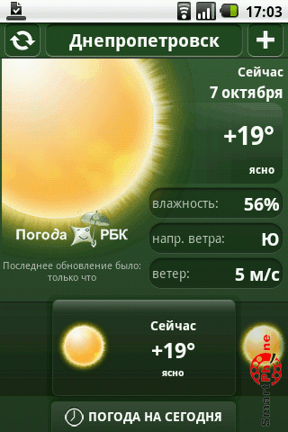 Программа РБК. Погода представляет собой утилиту от компании РБК, которое будет информировать вас о погодных условиях в месте вашего текущего нахождения и по всему миру. В настройках вы можете добавить любое количество из более чем 700 городов по всему миру, и получать потом текущую погоду и прогноз на 24 часа и 9 дней для всех этих городов.