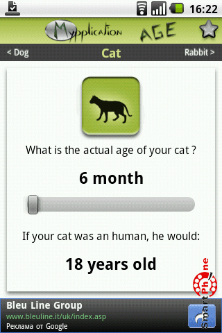 Animal Age для Android OS Статус: бесплатная . Разработчик: Программа Animal Age представляет собой утилиту, с помощью которой вы сможете подсчитать реальный возраст вашего питомца в переводе на человеческие года.