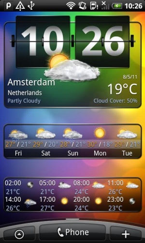 Weather+ - дает вам текущие погодные условия и 5-дневный прогноз всех метеорологических станций во всем мире. В программе отображаются: город, осадки и облачность, температура, давление, направление и сила ветра. Информация визуализируется красивыми полноэкранными видео для всех условий. Также возможно создавать несколько рабочих экранов, как в стандартном приложении погода и получать прогноз погоды с помощью Weather+ для нескольких городов.