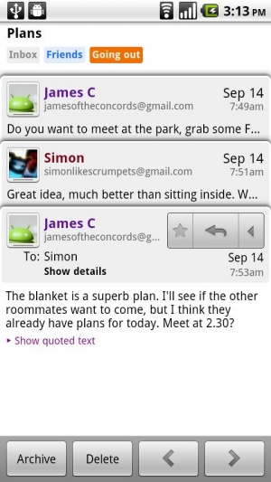 Приложение Gmail позволяет получать в автоматическом режиме сообщения на телефон, производить поиск по всем письмам. Возможность использования нескольких профилей Gmail для Android. Также как и в обычной веб версии действуют фильтр спама, автозаполнение адреса, горячие клавиши и многое другое!